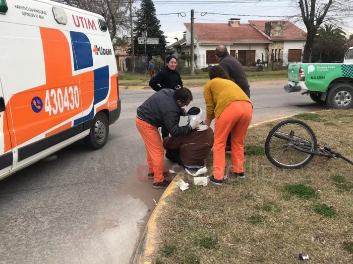 Este miércoles, en Frocham y Mitre se produjo una colisión entre un auto Volkswagen Suran, conducido por una mujer y una bicicleta, en la que circulaba un hombre que fue asistido y trasladado por UDEM.