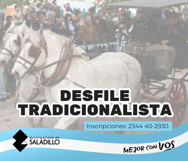 La Delegación de Saladillo Norte informa a toda la comunidad que, en el marco del 7° aniversario de la localidad y en coincidencia con los festejos por el Día de la Patria, se llevará a cabo el ya tradicional desfile gaucho.