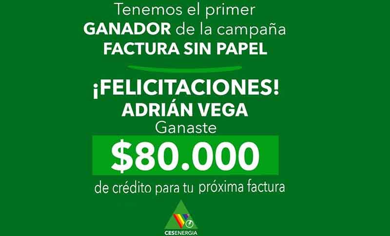 La Campaña de CES Energía para reducir el uso de papel ya tiene el primer ganador de los 80 mil pesos.