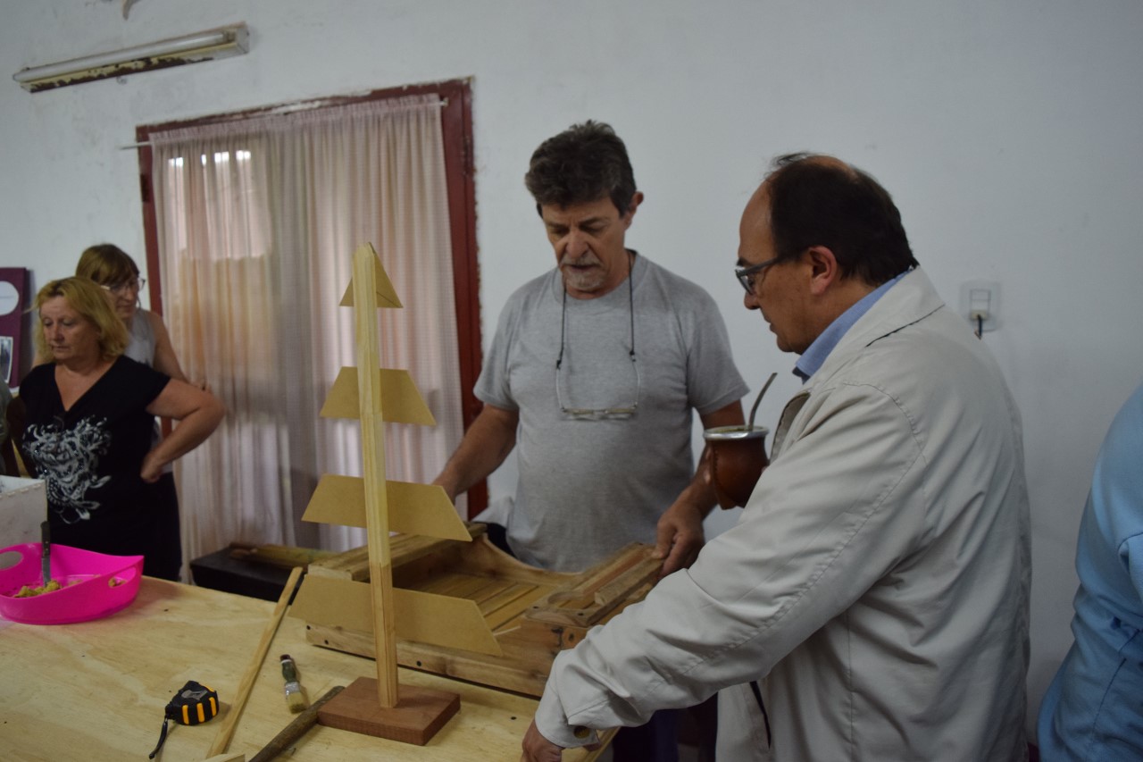 El Intendente Municipal de Saladillo, Ing. José Luis Salomón, durante una visita a la localidad de Del Carril, concurrió a observar los trabajos que habitualmente se llevan a cabo en el Taller de Carpintería Municipal. Las clases del mismo tuvieron lugar durante el año en curso en esa comunidad.
