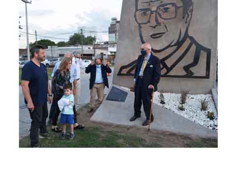 La obra fue realizada en hierro calado por láser por el artista Marmo, siendo esta una donación a la ciudad de parte de su fundación “Arte en las Fábricas” junto con otras dos obras de su autoría. En este caso se trata de la cara del ex gobernador e hijo predilecto de Saladillo, de doble cara sobre un soporte de concreto.