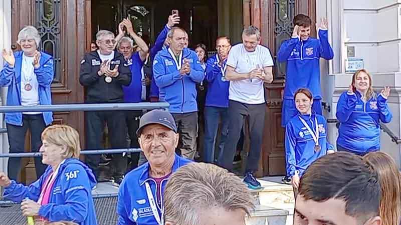 Muchas personas, entre ellos familiares y amigos, recibieron a los integrantes de la delegación en frente al Palacio Municipal. Allí también los recibió el intendente José Luis Salomón y miembros del gabinete municipal.