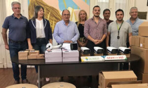 En el Salón Sesquicentenario del Palacio Municipal, el intendente José Luis Salomón junto a funcionarios y concejales presentaron este nuevo equipamiento que consta, además de las cámaras, de accesorios y soportes, diez switchs para conexión a Red y mil metros de cable UTP.