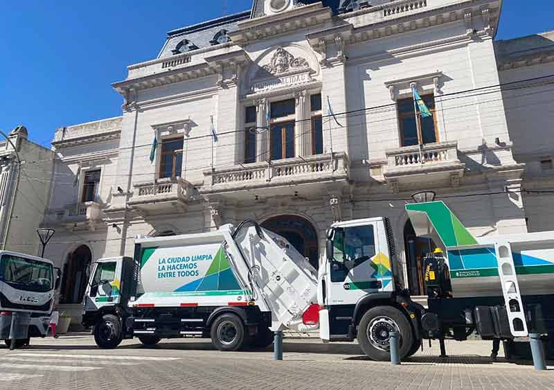 La Municipalidad presentó frente al Palacio Municipal presentó tres nuevas unidades que reforzarán la labor del área de Servicios Urbanos. Se trata de dos camiones volcadores y un camión compactador con kit para contenedores.