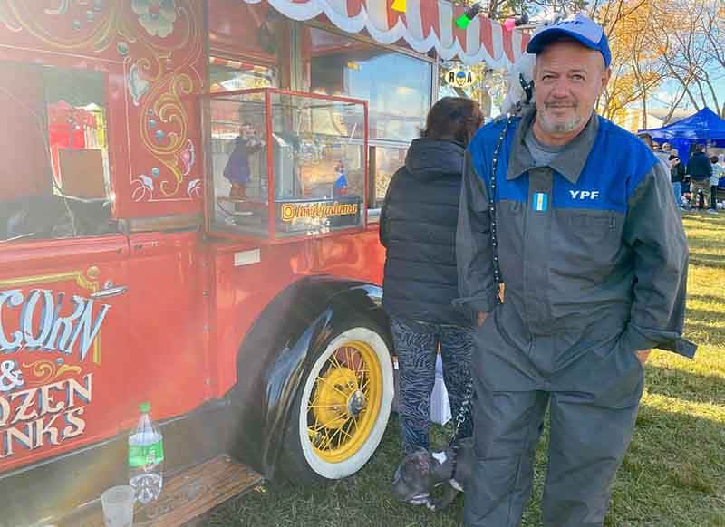 Él, por su parte, participa con su Ford A en la que vende sus pochoclos tanto en esta como en otras fiestas y encuentros acompañado por sus mascotas plumíferas, en este caso una cacatúa. “Esta muestra es imperdible, por la gente, el pueblo, los que vienen, son todos gente de primera. Es muy placentero vivir este evento con todos”, comentó.