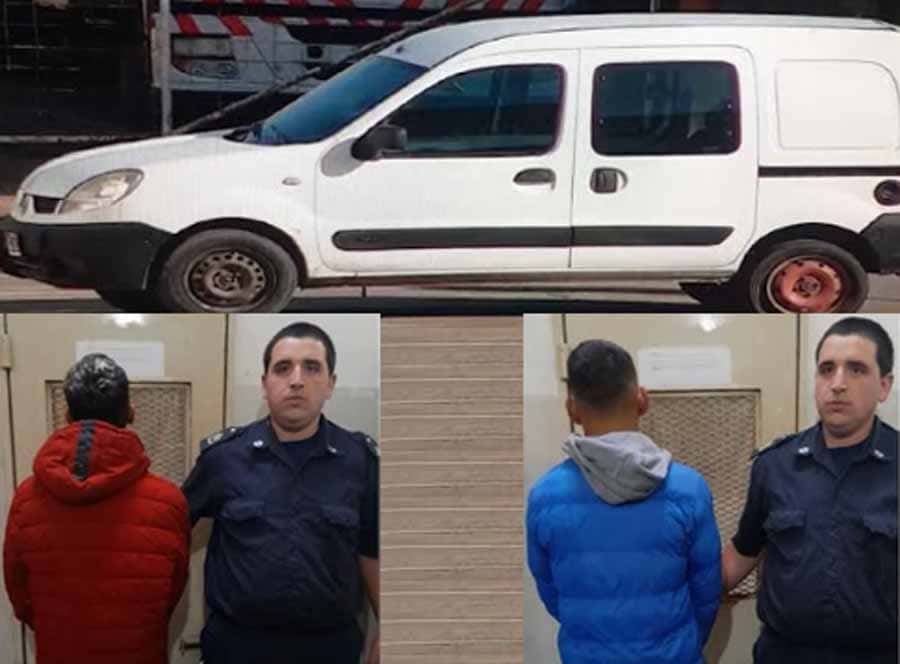 El día de ayer domingo siendo las 07.30 hs personal policial es alertado por Centro de Monitoreo Saladillo, toda vez que el operador había divisado a través de las cámaras que dos sujetos de sexo masculino se acercaron a un automóvil Renault 18 estacionado en Colectora Ricardo Alfonsín y Pereyra, y utilizando una llave cruz sustraen uno de sus neumáticos, por lo cual efectúa seguimiento de los mismos con las cámaras convocando móvil policial, que, en Colectora Peron y Lope Serrano, procede a la interceptación de los dos individuos, los cuales se movilizaban en un utilitario Renault Kangoo; constatando que el vehículo posee pedido de secuestro activo por el delito de ROBO de fecha 09/02/2024, requerido por la UFIJ 02 PILAR; asimismo, del interior del rodado se efectúa el secuestro del neumático sustraido y la llave utilizada para su sustracción . En relación a los imputados, son dos hombres, de 29 y 32 años de edad, ambos domiciliados en la localidad de San Martín (Pcia Buenos Aires), quienes fueron aprehendidos y trasladados a la Comisaría de Saladillo, imputados del delito de HURTO INFRAGANTI y ENCUBRIMIENTO, a disposición de la UFI Nro 2 a cargo del Dr. Javier Berlinghieri. –